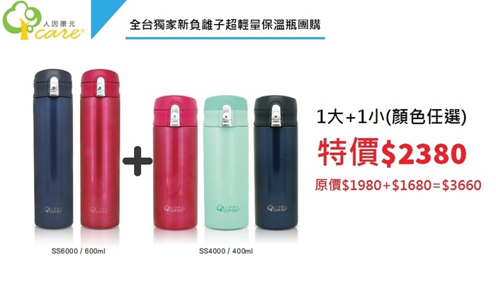 我個人每天喝的水貞的霹靂多的,我愛喝水也愛泡茶,夏天的時候也跟了團買了冷水壺,喝上一口冷泡茶真的超舒服的,現在到了冬天,保溫壺更是搶手,加上現在出門在外隨手有一個水壺其實也非常的環保,我個人的冷水壺跟保溫壺大概有十來個了,依照每天不一樣的心情跟出門時間長短來選擇水壺的大小,而且現在自備水壺不管買飲料還是咖啡還有折價,重點還可以為環保盡一份心力以外,現在因為天氣逐漸變冷的關係,所以很多熱飲都很快失去熱度,所以選一隻好用兼保溫效果佳的保溫壺是很重要的,所以這一檔開的是相當熱門的人因康元最新的保溫瓶,主打最新日本新負離子Neo技術和奶瓶大廠頂級Trintan安全材質,讓人因康元的保溫壺每次開團幾乎都是秒殺!