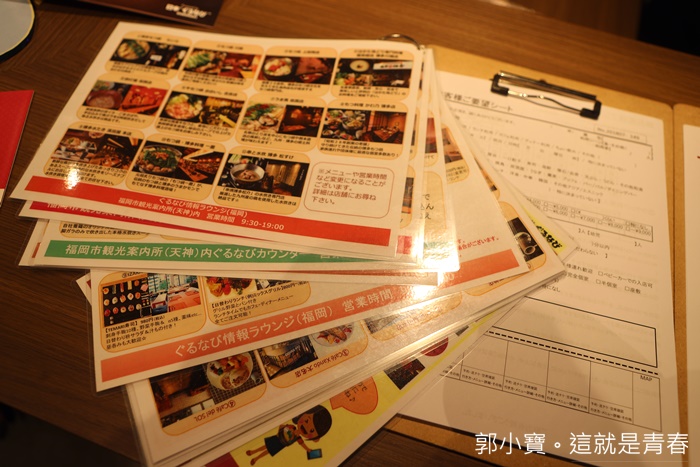 | 如果妳來不及在台灣預定餐廳的話,那日本ぐるなびGURUNAVI現在在四個城市都有服務中心的據點,分別在上野、大阪、京都、福岡都有服務中心,我們這次的福岡之旅除了在台灣就透過信件預訂了兩三間餐廳以外,到達福岡後又直接到天神的ぐるなびGURUNAVI服務所訂了兩家餐廳,福岡的ぐるなびGURUNAVI服務中心就在西鐵天神上面,位子非常好找,就在天神觀光案內所裡面。 |