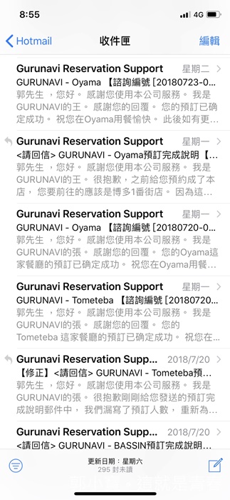| 電話連絡完後網站服務人員就會開始跟妳通信確認全部的細節,加上訂位人數及時間,會再最反覆最後的確認,因為ぐるなびGURUNAVI好不容易才開啟這樣的中文訂位服務,所以拜託別破壞日本餐廳對台灣人的好感,不要再有消費者最大的老大心態,隨便訂位完後又無故取消及一堆藉口無法到達,不然到時候這服務關閉也破壞日本人對台灣人的好印象,最終確認好的時候到達餐廳的時候只要把信件拿給店員看即可,據說如果狀況良好的話,ぐるなびGURUNAVI會開放及爭取一些東京比較高知名度的米其林餐廳代訂,而且都沒有收取服務費,真的很期待那一天的到來!!! |