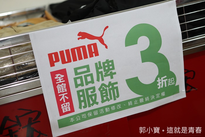 這次最主要的強打是PUMA跟NB兩個品牌,這兩個品牌不管衣服還是鞋子你看到的全部都是單雙4折、兩雙3折、買越多折越多,這類型的特賣會真的都很殺,全部都是拚量的,建議真的要約齊親朋好友一起來採購,鞋盒上面的售價都是原價,所以就是直接鞋盒上面的價格直接打折數!! |