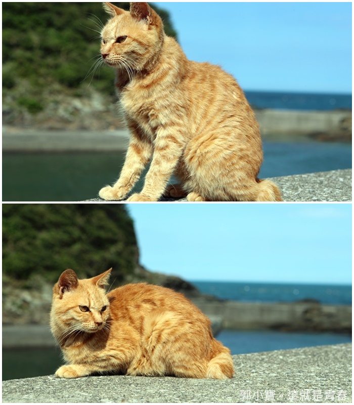 | 不管在馬路上,石版上、草原上、堤防邊都有獨自享受陽光跟海風的貓咪,每一隻感覺都好悠閒,且跟人的互動也很頻繁,我真的超推薦這一座貓樂園的,保證可以讓愛貓人士玩到一個不要不要的。 |