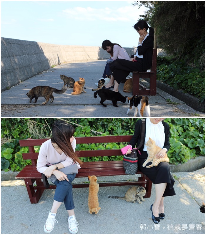 | 先坐在海岸邊休息一下,坐著不動貓咪們就會慢慢靠近過來,一點都不怕遊客,甚至會跳上遊客的大腿上休息午睡,真的是可愛到爆了,很喜歡跟人互動的貓樂園。 |