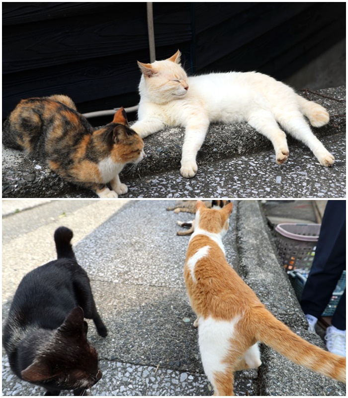 | 貓咪們跟當地的居民相處得非常融洽,也不會越矩跑到居民的家裡,即使放飯時間也不會離房子太近,都很守規矩的乖乖在原地等候。 |