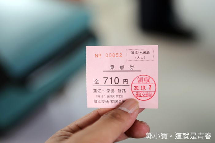 | 因為我們當天逗留的時間較久,所以回程的時候就打算包船回來,速度也快很多,包船單程的價格是一萬五日幣左右,如果人數夠多也可以選擇包船來控制自己的時間,接駁船往復卷我覺得還滿便宜的。 |