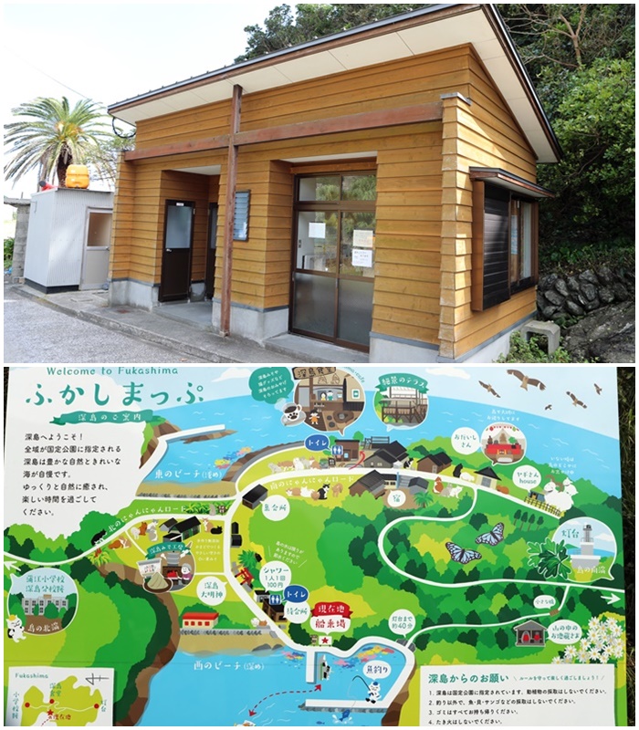 | 觀光案內所裡面是空的,可以自由在這邊休息,有提供廁所,也有深島散步地圖。 |