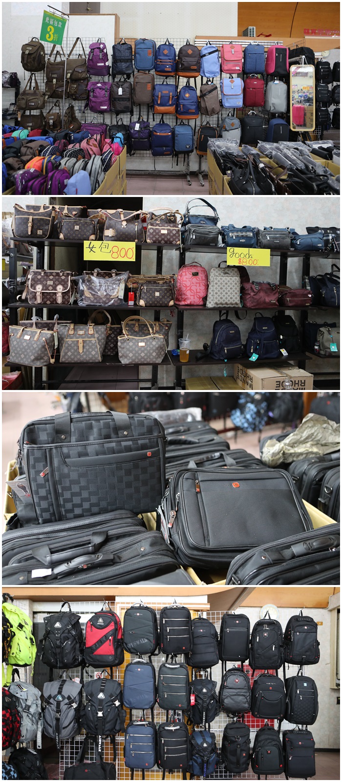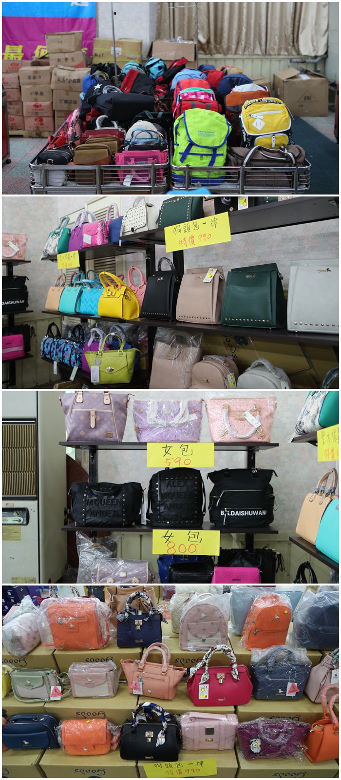 | 各式各樣的包款,後背包、女用包、造型包超多款式讓你一次挑的過癮,價格卻是都非常便宜,我是不知道還可不可以殺價啦,但是有機會的話還是可以問一下板娘,我個人覺得應該還是有可以下殺,但是這些版本身的款型我都覺得很不錯,都是很新款的包款,不像是老舊包款拿出來出清,所以我覺得這一家包包廠商還滿有誠意的。 |