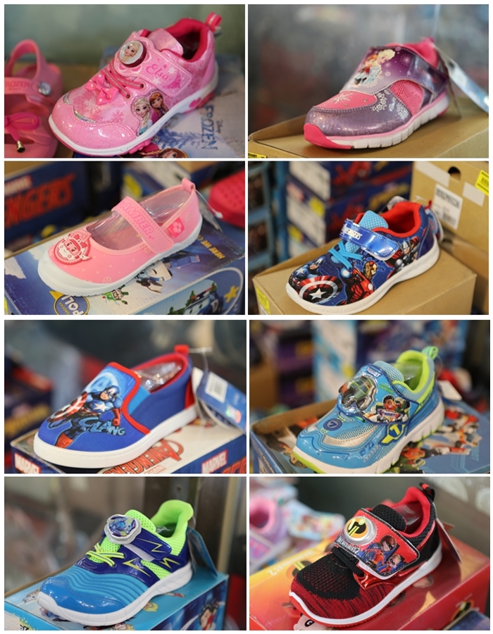 | 現場也有販售各品牌的童鞋,所有小朋友需要的日常生活必需品幾乎都可以在這一場特賣會裡面買到,鞋子的種類款式也超級多,男女童通通都有準備的很齊全,非常受到小女生喜愛的冰雪奇緣也有準備很多貨,還有很多小男生要的動漫卡通鞋也都可以在這邊找到。 |