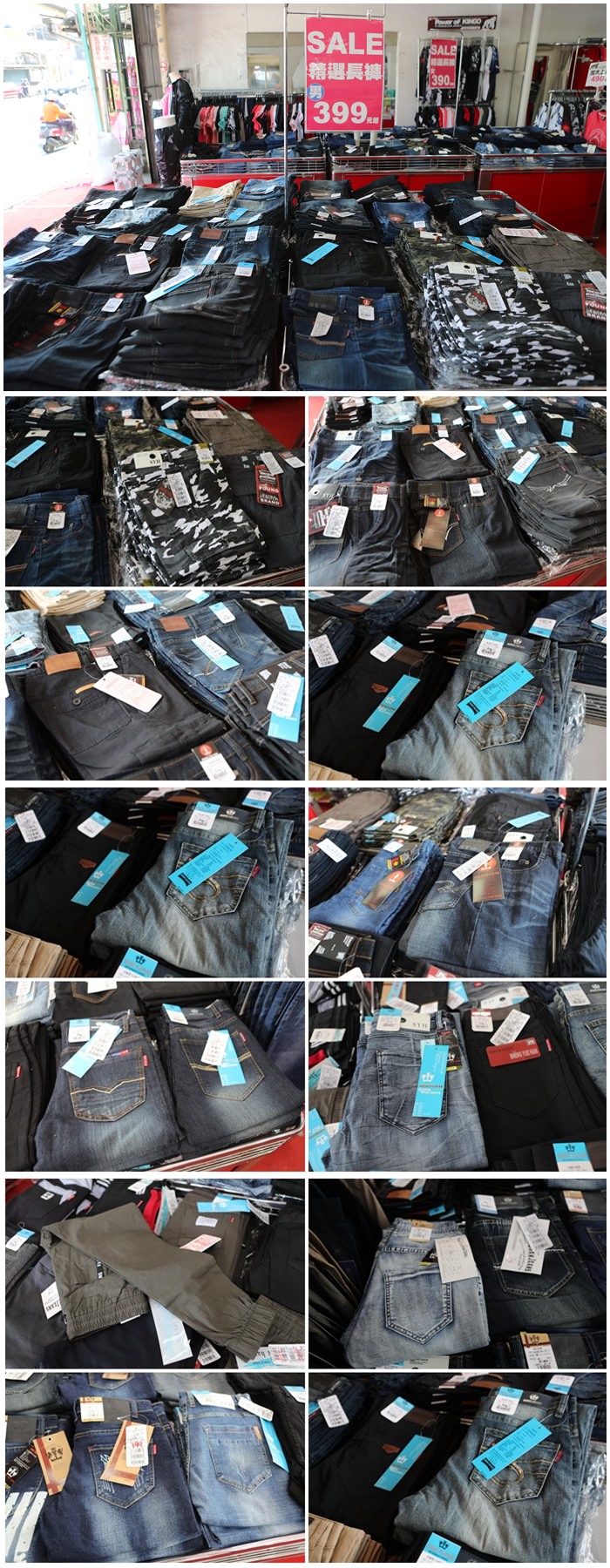 這一區的牛仔褲全面都是399,但是尺寸相對就很齊全了,很適合買來當作工作褲,版型也都還不錯,穿起來也滿有立體感的,還有丹寧的刷色也都很不賴,不像有些特賣會的399牛仔褲都很薄,這一家的牛仔褲品質真的好了許多,而且款式相當的多呢,現場還可以幫客人直接改長短,不過改長短的部分需要額外付費,好像是50元的樣子,現場款式真的超多超好挑!!! |