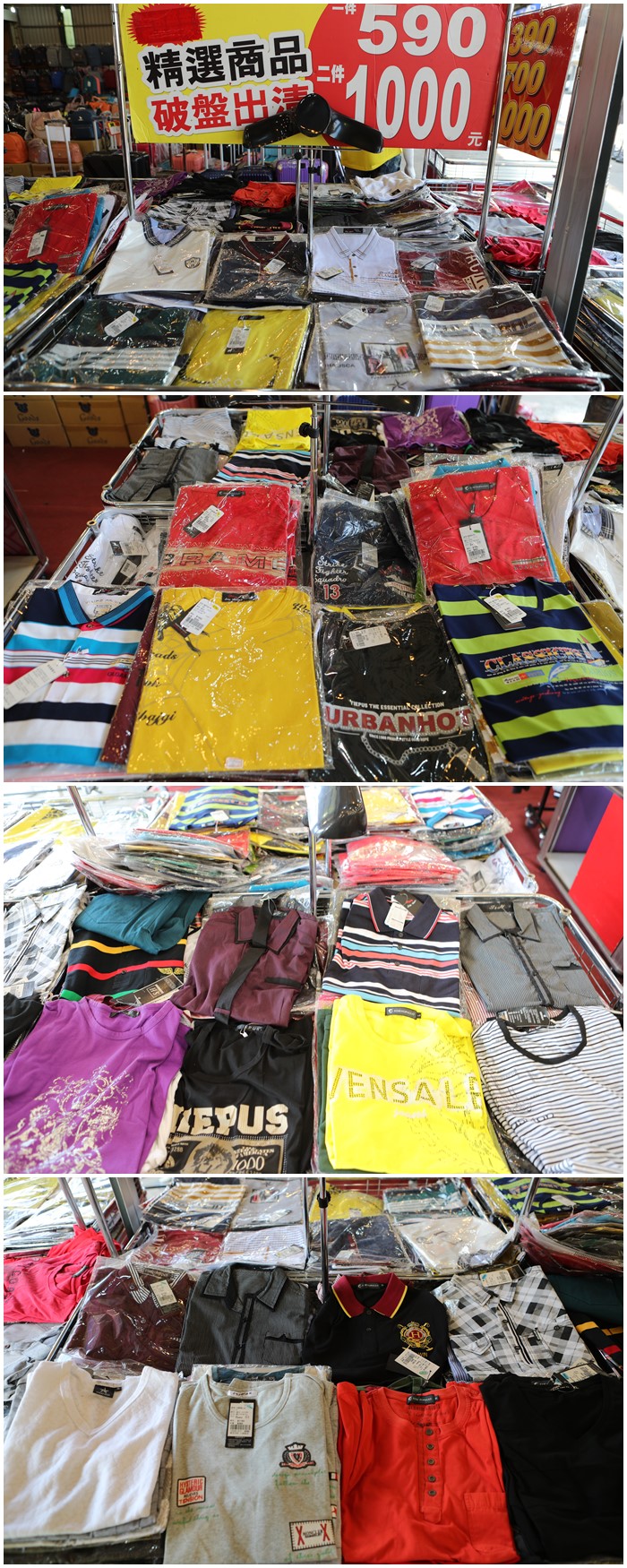| 超划算的價格真的不推不行,三件1000真的很值得來挖寶撿便宜,這一區大部分都是T桖為主。 |