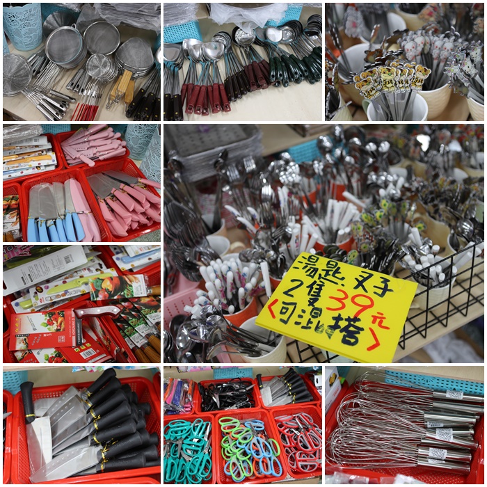 | 小湯匙兩之39元非常好買,小湯匙的部分都很可愛,還有各式各樣廚房的湯杓跟打蛋器還有各式各樣的水果刀、菜刀、剪刀等等非常好挑,幾乎你在廚房裡面需要的任何商品這邊通通都可以找到,而且全部都是39元就可以帶回家。 |