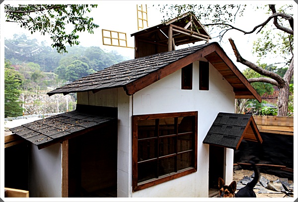 向陽田園總共很多狗狗,要是民宿主人沒說,我還真看不出來那麼漂亮的小木屋是狗兒的屋子。 |