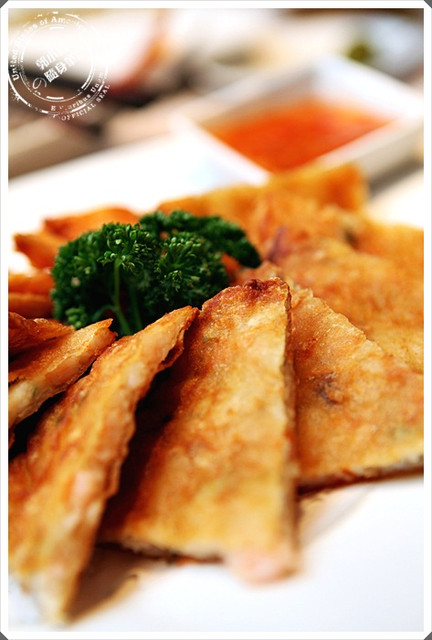 月亮蝦餅的風潮似乎老早就從泰式餐廳延燒到台式餐廳了,剛做好的月亮蝦餅入口是最棒的,