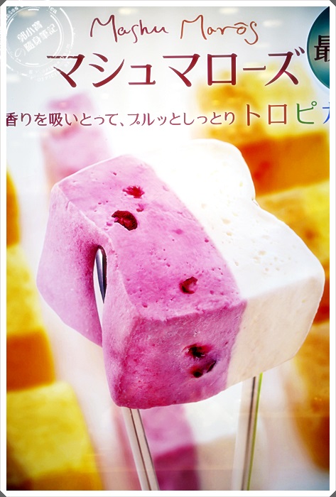 | marshmallow elegance跟シュガーバターの木其實是同一家公司的商品,自從シュガーバターの木明星商品普及化後,公司就一直非常積極想在開創出新的明星商品,2013年就推出了marshmallow elegance這個棉花糖的品牌,並且積極的搶入百貨甜點街,整個年度下來似乎讓日本人沒有多大的興趣,銷售也算是平平˙,但是對台灣人來說應該是個不錯的選擇,基本上棉花糖的進化在日本算是日行千里了,但是台灣對棉花糖確是一直止步不前,所以我挑了這一款新商品跟大家分享,可以帶回家試試看,marshmallow elegance的產品線算是滿多的,但是我基本上只推薦一款而已。 |  |