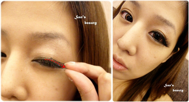 記得唷!要比自己本身的眼睛畫的在長一點。