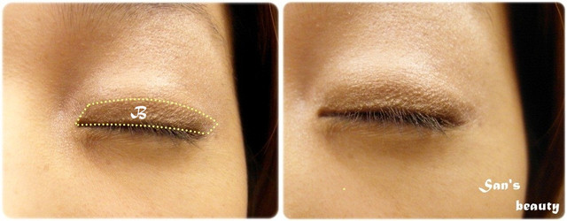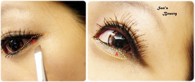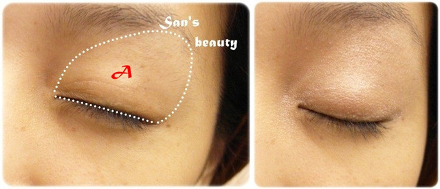 將A 整個眼皮上做打底,延伸到眉骨區 |