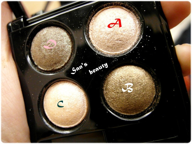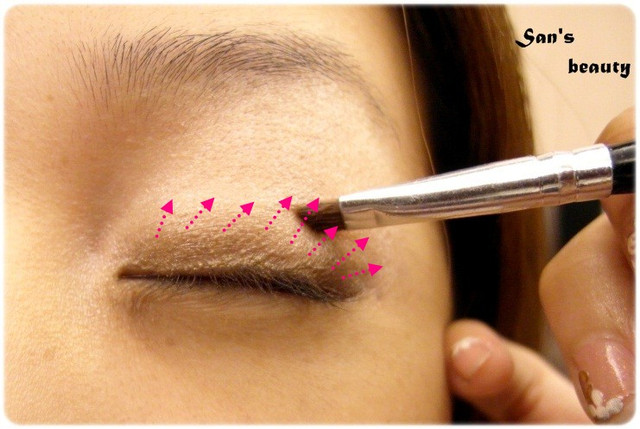在來利用最後帶點咖啡色的眼影,D色從下眼中開始往眼尾拉出去