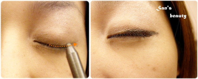 再來也是利用眼線筆,先把眼尾的ㄑ字補起來,如圖片這樣子