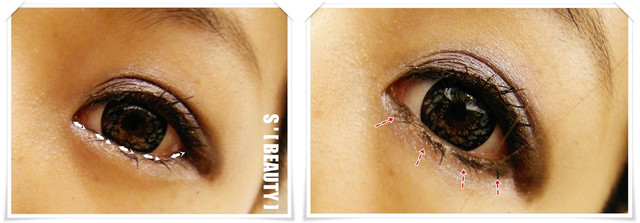 再來利用眼線筆,再下眼線的地方 一結一結的畫上下眼線