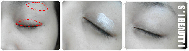 一號眼影是白色帶有珠光的眼蜜,這可以幫助接下來上的眼影更吃妝呢 |