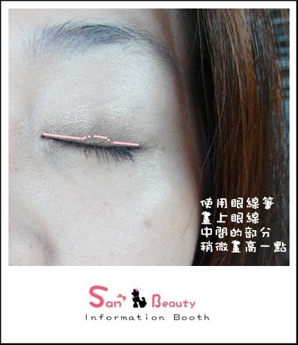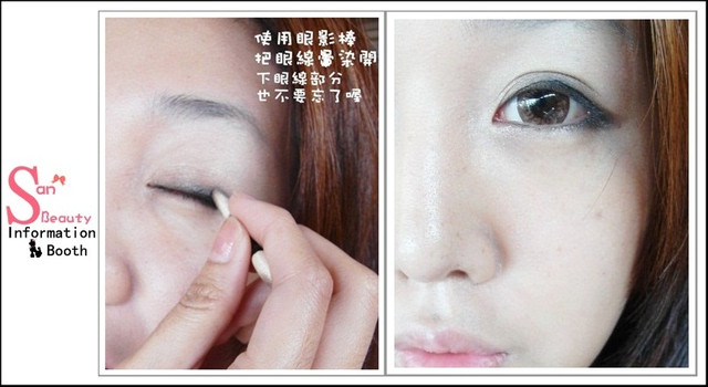 使用眼影棒,把眼現暈開,上下都要記得暈染開來喔