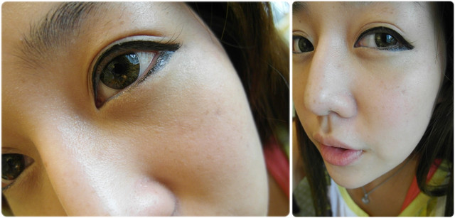 從側面拍給大家看看,這樣子,眼妝就完成了耶