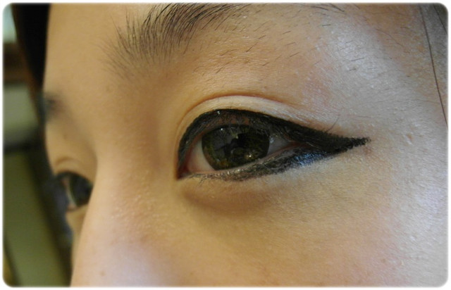 第一個步驟很簡單,就從眼頭開此順著眼尾畫,然後畫到眼尾時記得要拉長喔~~