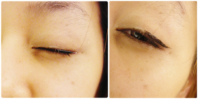 記得喔 眼頭一定要細細的在慢慢的往後拉高,看左圖 就知道我在講甚麼了 |
