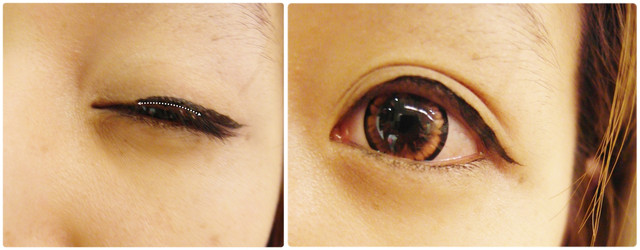 眼睛會比較大沒錯,但妝感比較重,既然是新手眼線我們就從 基本的 可愛的眼線畫起