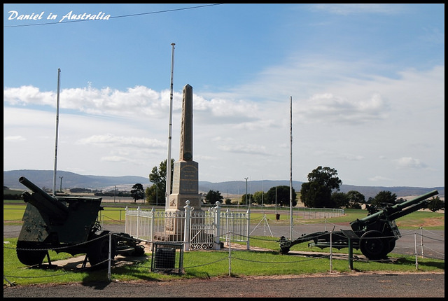| Campell Town也曾經是以前軍隊駐紮的所在地,所以在公園內也有槍炮的展示處,雖然為數不多,而中間的紀念碑則是紀念著在二次世界大戰之中喪生的人們而設立,類似如此的紀念碑在塔斯馬尼亞許多小鎮都能得見, |