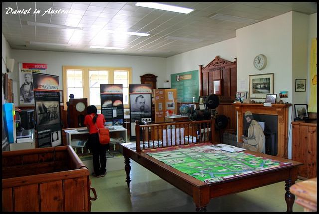| 小鎮中心有座遺產公路博物館,是讓遊客免費參觀的博物館,除了可以拿到關於這小鎮的資訊外(介紹歷史建築分布於何處),還有個小型的展示館,主要是展示以前法官在審判犯人時的模樣,跟小鎮內的人行步道的特色紅磚相互呼應, |