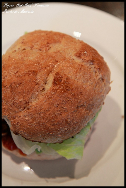 | Groovy Souvy(A$12.9),這個漢堡是羊肉漢堡,除了肉片之外還有起士、生菜以及淋上酸辣醬汁而已,麵包選的則是全麥麵包,最值得一提的是他們的麵包水準真的很棒,一開始吃起來十分的有嚼勁,但嚼到最後卻是會越嚼越香,很少吃過這麼棒的漢堡麵包,而羊肉鮮嫩多汁,一口咬下羊肉的鮮味跟麵包的甜味所混在口中的滋味最是讓人回味再三, |