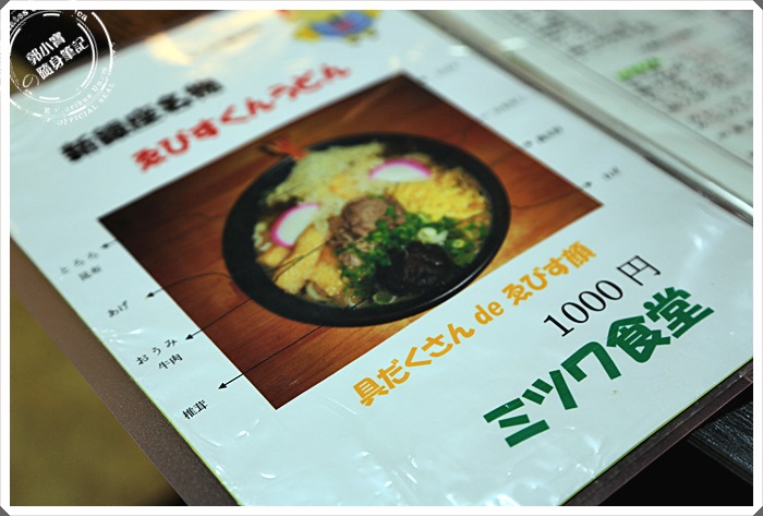 | 菜單上第一頁就是店家的招牌烏龍麵,這邊販售的商品其實滿多樣化的,從拉麵到蕎麥麵還有烏龍麵,還有各式各樣的丼飯通通丟有。 |