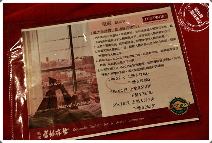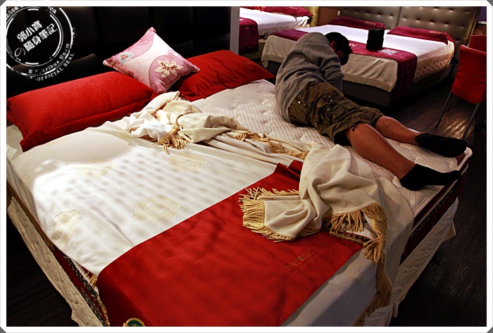 | 蕾絲床墊在夢時代的金典睡眠館現場幾乎就有了超過20張以上的大床讓我們可以好好的了解床墊,也可以逐一看看每個不同尺寸的床墊,且從硬的到美國人喜歡的超軟床墊通通都有,真的建議來這邊挑,可以一張張一路睡過去,選一選哪一張床最適合你,千萬別迷信睡硬床對身體比較好,哪張床睡得最舒服就挑哪張床,理面的服務人員告訴我們,蕾絲床墊連續那麼多年得到美國讀者文摘的金獎就是最好的品質保證,目前每一張床都是獨立筒製作而成。 |