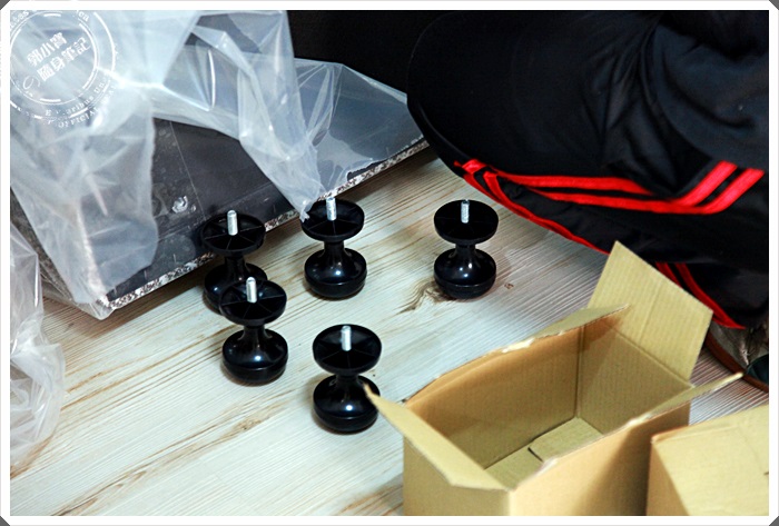 | 下墊的角柱調整好我要的高度後,大哥們立馬幫我鎖上下墊的四個角。 |
