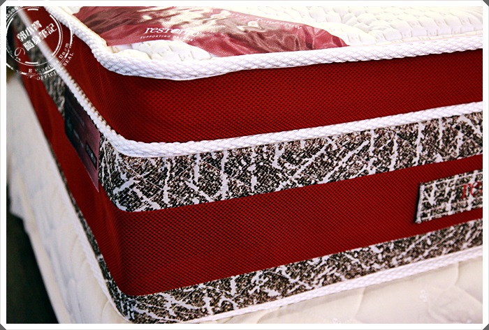 因為很多網友都有說到獨立筒這個缺點,長期坐在床緣很容易造成塌床,關於這一點當然也有好好的請教一下,蕾絲床墊的工作人員則是回答我說:床墊四周以FOAM CASE圍邊特殊處理,鞏固邊框適合坐臥,床墊邊框不易彎曲下陷。