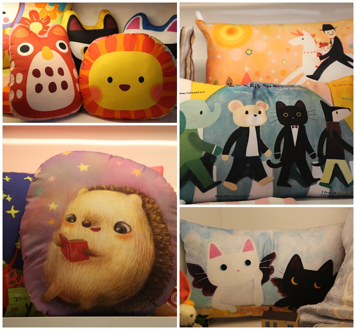 | 沒想到一進來這邊MOMO挑選的產品跟花猴推薦的典雅完全不同,MOMO說他一開始就瞄準格蕾家跟很多插畫家合作的限量款了,這些抱枕跟外面一些印刷的抱枕不一樣,料子都相當的好,重點是很多抱枕都有完整的呈現出筆觸的感覺,讓人看了就很喜歡,當然抱枕的部份MOMO也下手了。 |