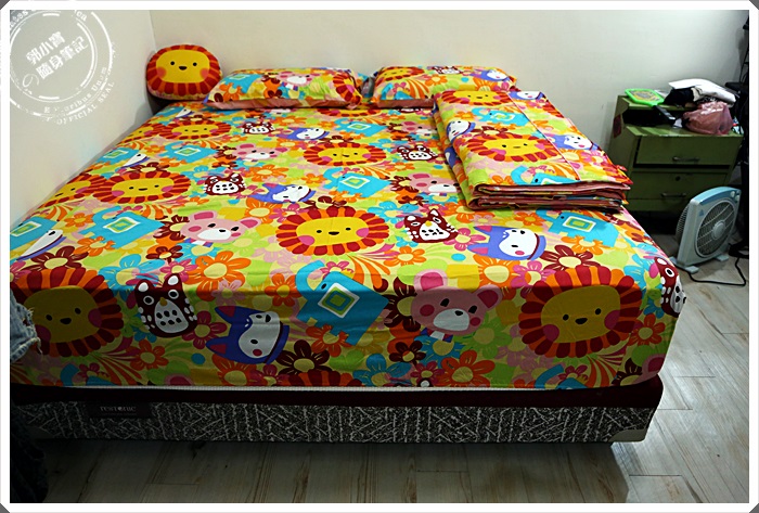 | 鋪好床後果然一整個好童心,這也太花花綠綠了,把我的白牆對印的好孤單的感覺,看來也要來開始挑一下擺設的家具跟燈飾了,也因為買了這套寢具真的發現下墊會很不對稱,應該再買一個側裙的!!