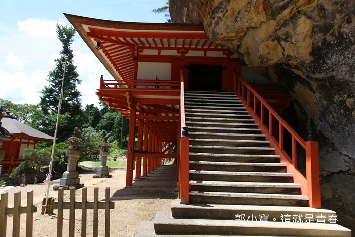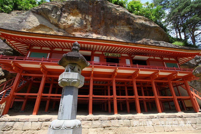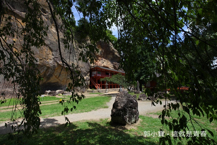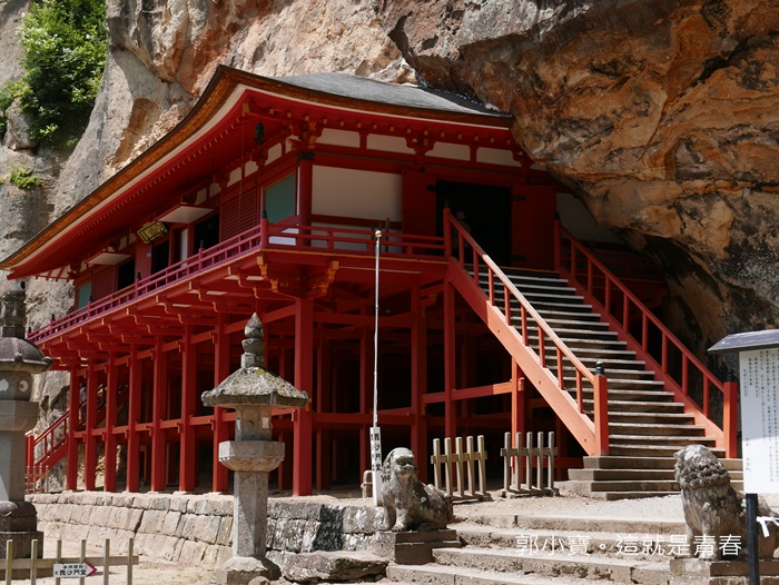 | 一步步走上了這達谷窟的寺廟,到達門口就看了禁止攝影的標誌,只好老實的收起照相機,裡面的構造只能等大家親自來一趟才能知道了,其實也沒有特別的,就是建築在石壁內的寺廟,一邊是木造一邊是石壁,不過倒也新鮮。 |