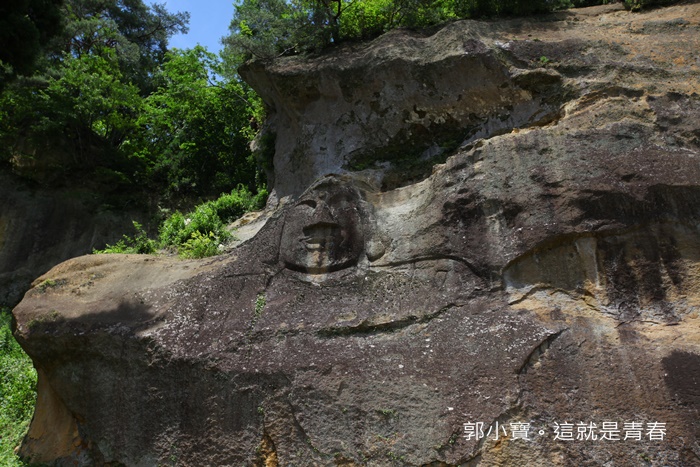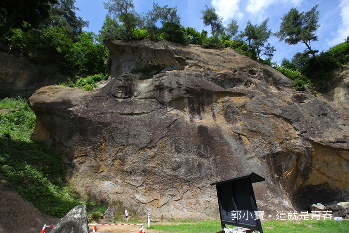 | 就是在岩石上有一個很像大佛的笑臉,不知道是天然形成的還是人工雕刻上去的就不得而知了,告示牌上應該有寫,但是我看不懂日文XD |