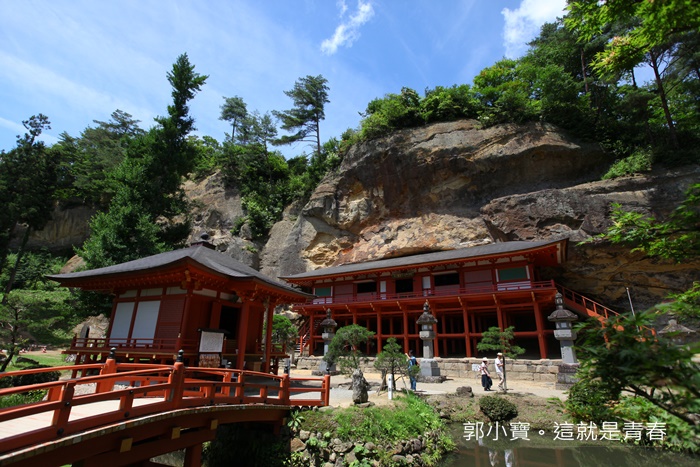| 達谷窟前方的小湖,從這邊欣賞達谷窟又有不一樣的美感。 |