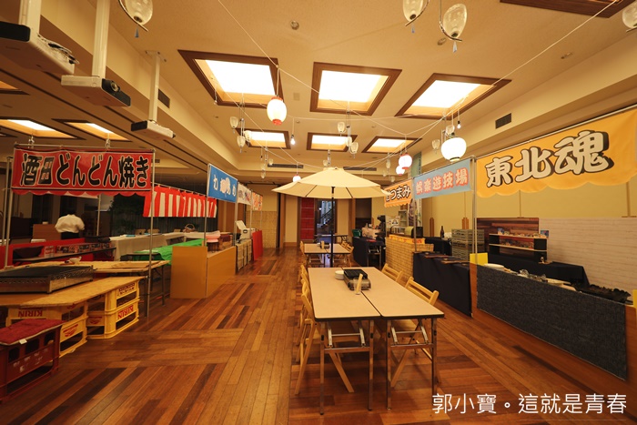 | 晚上住在花園酒店旁邊就是超大間的超級市場跟藥妝店,所以大家採買的火力相當集中,這次的行程大部分飯店旁邊都有購物中心,非常懂得我們的需求,這家飯店最有特色的是晚餐的部分,把整個日本夜市文化搬到飯店餐廳內,每個人都可以品嘗到日本夜市文化的餐點,主餐是牛排跟生魚片外加其他都是吃到飽了,還搭建了流水麵出來真的非常用心。 |