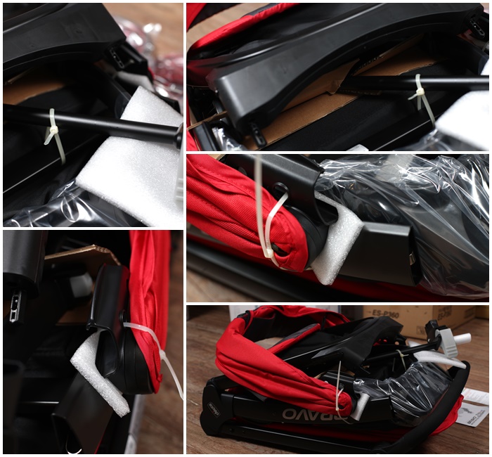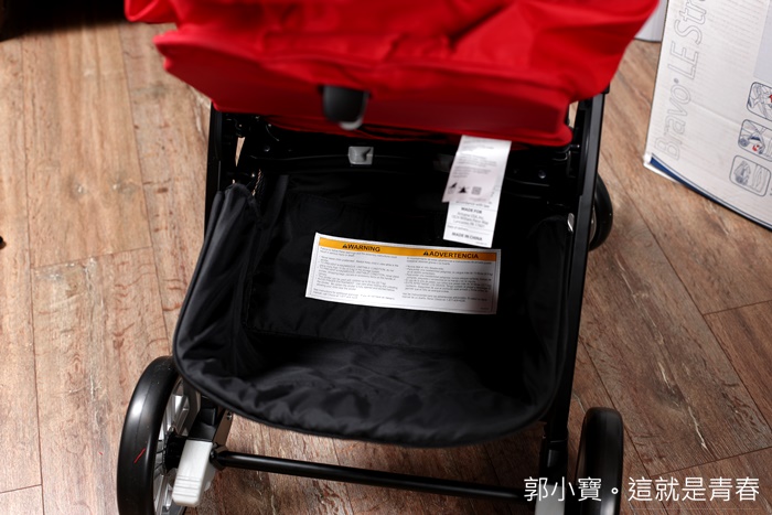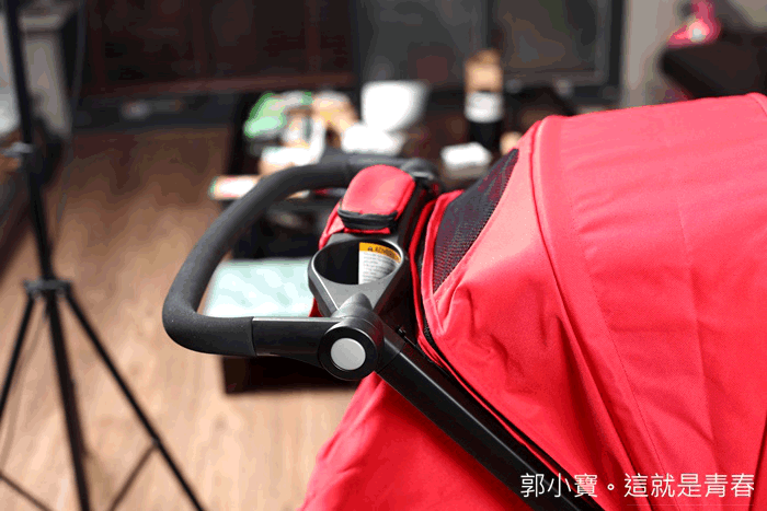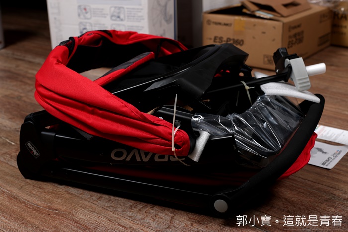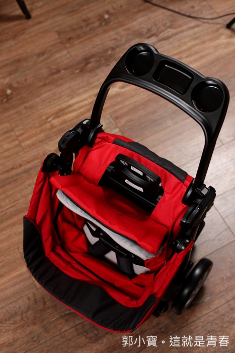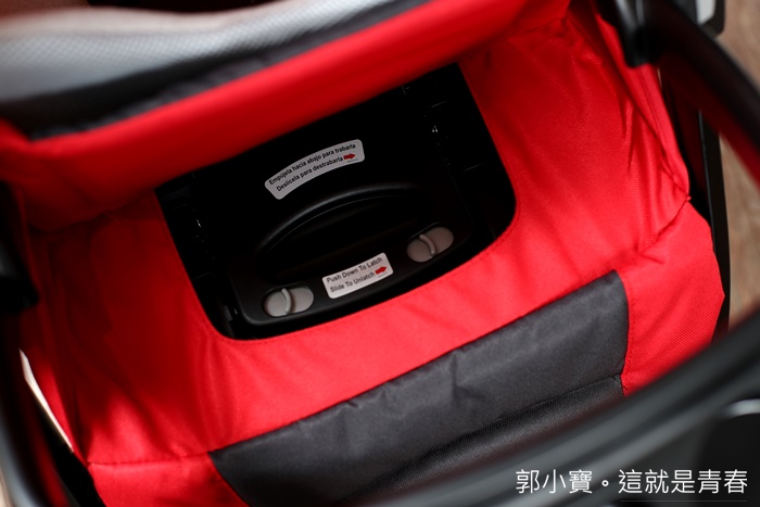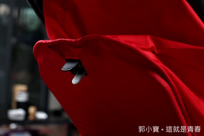 | 攤開推車骨架的時候我就一整個超喜歡的,紅黑色的配色真的非常的大方沉穩以外,主架結構也非常穩固,搖晃的時候骨架也不會晃動。 |