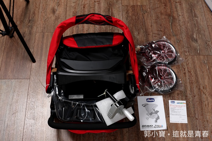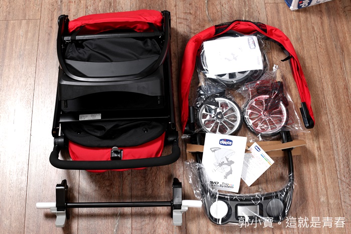 | 必須承認拿出推車骨架的時候真心覺得Chicco Bravo真的非常有質感,從座墊到骨架到烤漆都深得我心,這時候才發現原來骨架裡面還藏了很多組合的零件,且都有特別的固定跟保護措施,避免劃傷車體烤漆,這一點我覺得還滿貼心的,每一個零件都固定的非常穩。 |