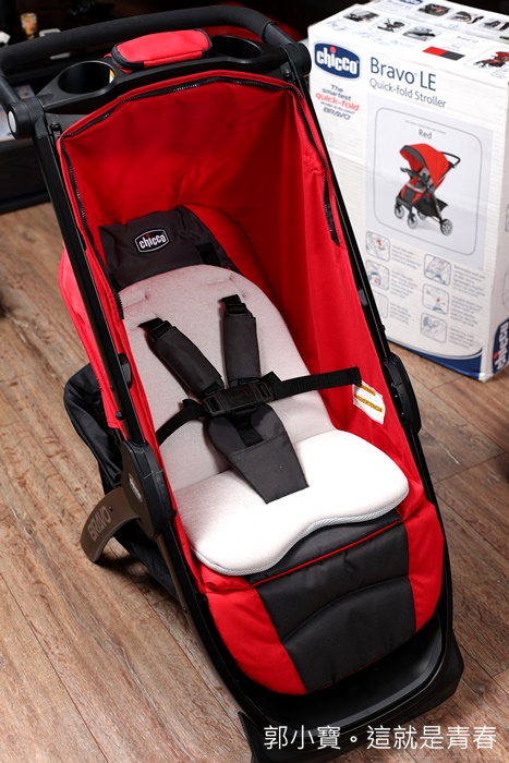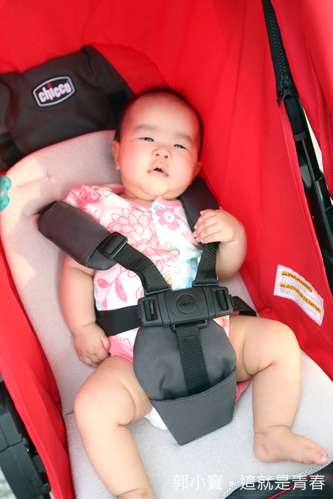 | 像我們家Cola才一個多月的新生兒,搭配椅背最低可以到近平躺,Chicco Bravo也可以加裝汽座提籃,大小朋友都可以依照小朋友的最佳舒適度調整,在功能調整上Chicco Bravo算是發揮得很淋漓盡致。 |