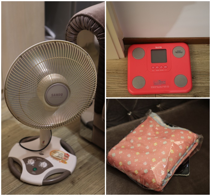 如果入住的時間是冬天的話,還可以跟櫃台借電暖器,體脂機我一開始就把他藏起來了,因為我怕老婆每天量體重怕胖就不吃月子餐,順道一提,這台機器除了體重、體脂肪、還可以測量內臟脂肪還有內臟年齡等多功能,到底量的這麼精準是想嚇誰!!!!