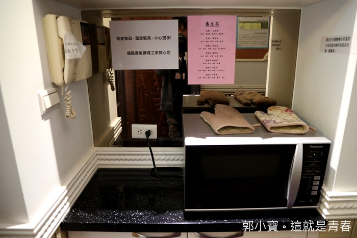 | 每一層樓走道都有微波爐可以加熱菜色,不需要擔心飯菜冷掉的問題,月子餐的餐碗都是可以加熱的。 |