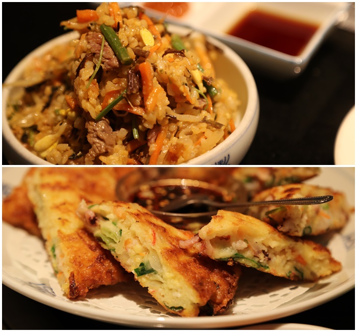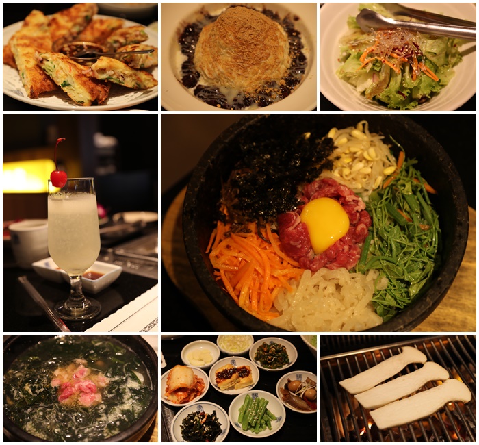 | 除了兩道肉品以外,套餐還有提供六種小菜、熟成牛肉石鍋拌飯、熟成牛肉海帶年糕湯、風味甜品等附餐,我們還加點了海鮮煎餅跟水梨果汁,水梨果汁很好喝不死甜,還可以喝到一顆顆果肉的感覺。 |