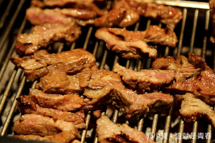 | 全程都是服務人員桌邊服務燒烤,自己完全不用動手自己烤,熟成牛肉那麼美味的肉品當然要專業的人來幫忙燒烤才能烤出他最美味的熟度,服務員人建議五分熟跟七分熟兩個熟度,讓客人自己選擇,我們則是選擇了五分熟,烤熟的牛肉服務人員會幫客人裝盤放到面前,這服務真的也太好了! |