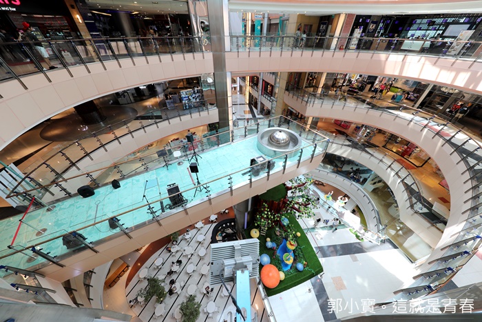 | 吃完後走出餐廳往下一看,其實我真的很喜歡大江國際購物中心的其中一個原因就是他的天花板有一部份是玻璃帷幕,讓自然的陽光灑落在大廳中庭,明亮度大增以外,這種自然的光線也是我超愛的,彷彿在室外空間的舒服。 |