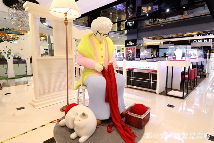 之前在圓形廣場上的大江媽移駕到一樓了,以前只能遠眺現在可以近看了,去年想表達出異鄉遊子的慈母手中線的概念持續延續著,旁邊喵星人也很可愛,這一看真的讚嘆大江國際購物中心連這些公仔的品質要求都非常高!